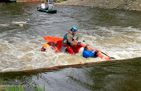 Nízký stupeň za zatáčkou s poměrně silným vývarem. Nebezpečný je již od 10 kubíků, což bývá průtok během vodáckých akcí na Divoké Orlici.