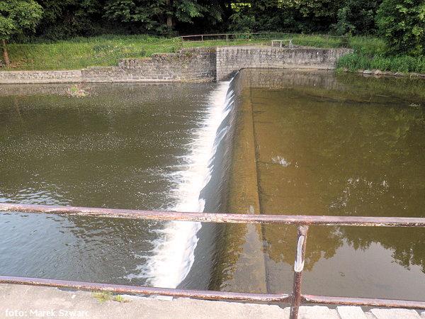 Starší jez, široký, se šikmou spádovou deskou místy v dolní části již poškozenou, výška 2 metry, náhon vpravo. Kolmá navigace, pod jezem nebezpečné vývařiště za vyšších stavů, kdy je Odra v těchto místech dobře sjízdná.