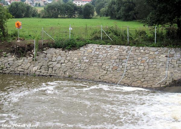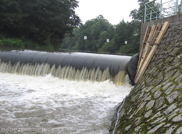 Jen pod pravou částí vzniká vývar, vakový jez je v šikmých břehových křídlech, nemožnost výstupu.