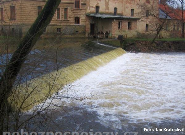 Za malého průtoku relativně bezpečný jez, jinak se zde tvoří silný válec.