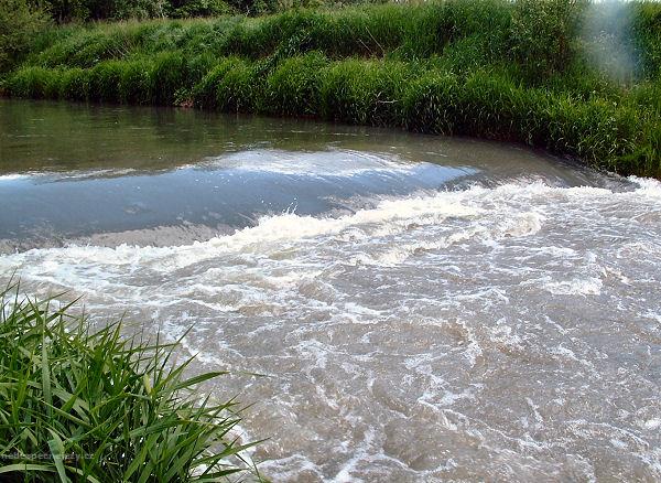 malý a velmi nenápadný parabolický jez vysoký sotva 0,5m, ale s velmi dlouhým vývarem. Stupeň i celý břeh nad i pod je v šikmé navigaci bez vracáků.