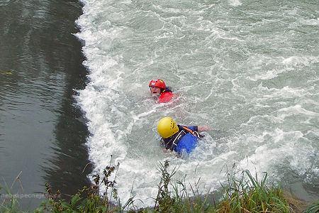 před jezem se obtížně zastavuje, protože není žádný vhodný vracák v šilmé navigaci. Lépe vpravo.