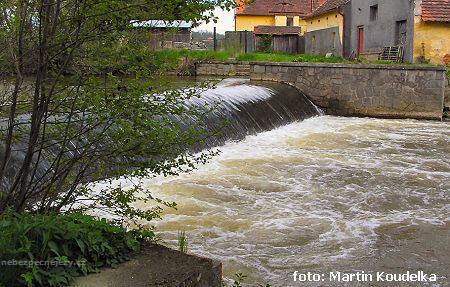 Pravá strana. Jez není dopředu moc vidět, řeka zatáčí doprava a hned za zatáčkou je vpravo jez. Pravý břeh bývá silně zarostlý kopřivami a křovím. Zastavení vlevo je obtížnější, je tam náhon do mlýna a celý prostor je soukromý pozemek patřící k mlýnu.