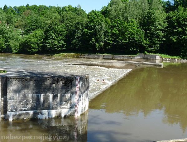 Díky velmi úzké propusti může dojít ke špatnému nájezdu a sjezdu jezu přes korunu. Tím dojde k převržení přímo do válce pod jezem. Dalším rizikem je za zvýšených stavů stržení zastavující lodě nad jezem proudem do jezu. Díky navigaci nemá plavající vodák možnost úniku po stranách jezu.
