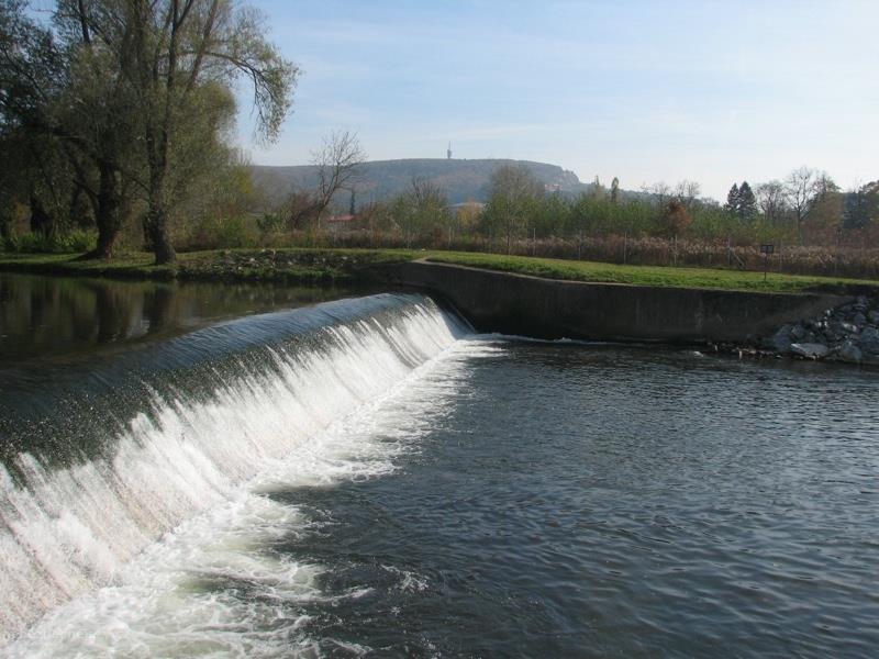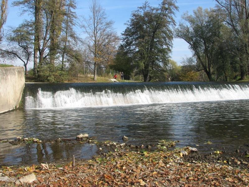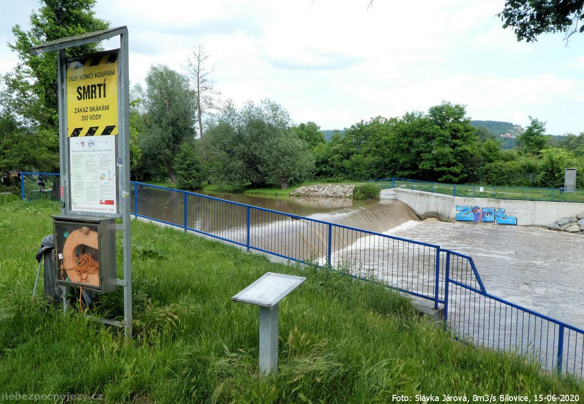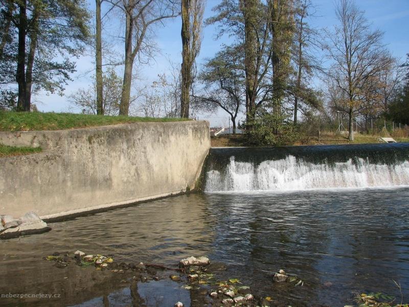 Parabolický jez, asi 8m dlouhá vana v podjezí, přes kterou je za větší vody válec. Množství nehod je malé jen díky tomu, že většina vodáků končí na předchozím jezu. Nad jezem je pomníček - utonutí za VV.